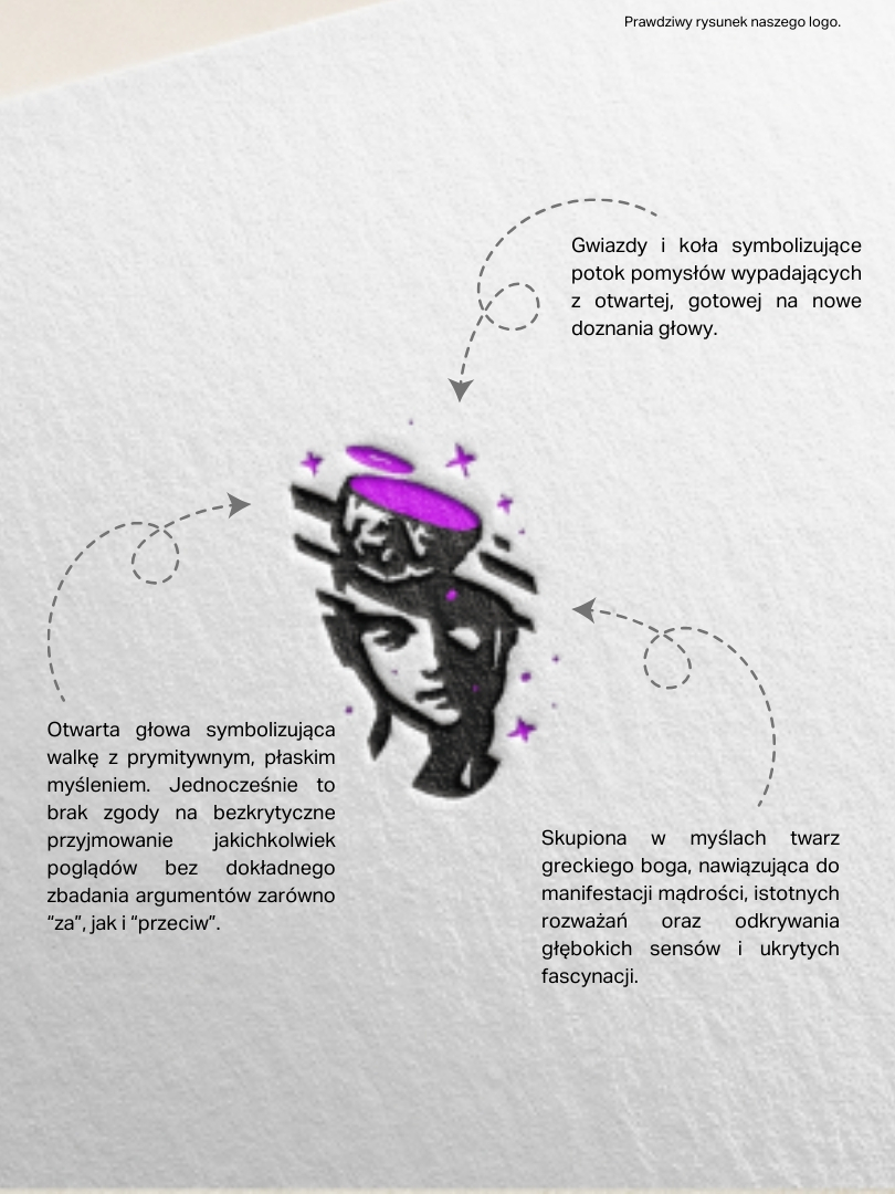 To logo to hołd dla mądrości greckiej filozofii, z połączeniem tradycji i nowoczesności.